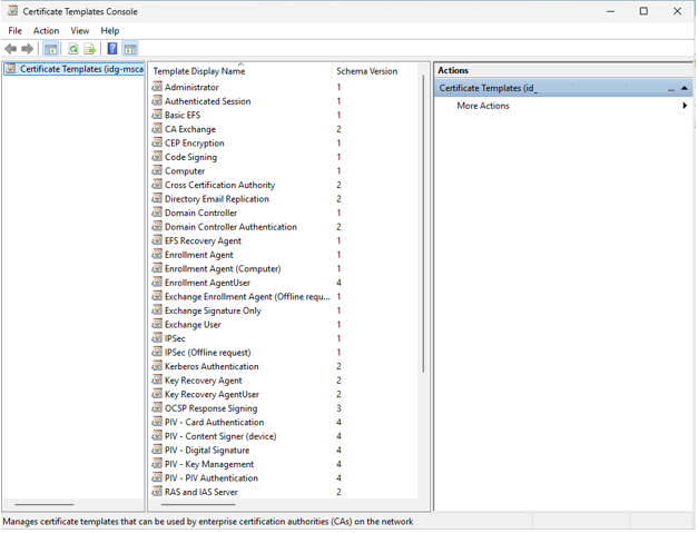 Right-click Certificate Templates, and then select Manage. The Certificate Templates Console appears.
