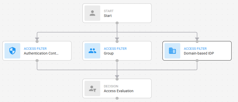 Connect Access Filters to the Start node and then connect them to the Access Evaluation node as shown in the following figure.