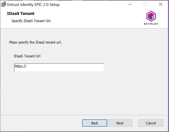 Enter the Entrust Identity as a Service URL (IDaaS URL).