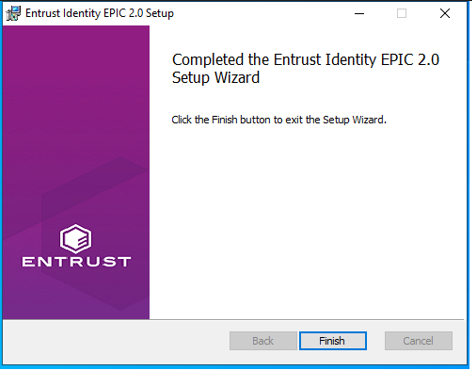 Click Install to start the installation. The Completed Entrust Identity Epic 2.0 Setup Wizard page appears.