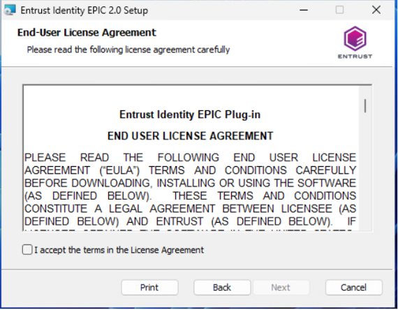 Download the Entrust Identity Epic Plug-in 2.0 software from Entrust TrustedCare.